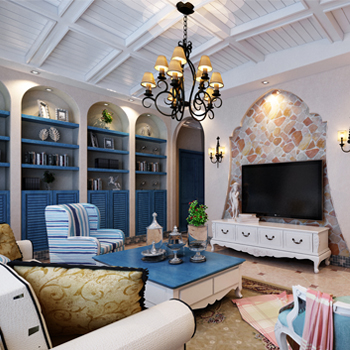 地中海沿岸的居民對大海有深深的眷戀,表現(xiàn)海水柔美跌宕起伏的浪線在家具中是十分重要的設(shè)計元素,房屋或家具的線條不是直來直去的,顯得比較自然,因而無論是家具還是建筑,都形成一種獨(dú)特的混元造型。
