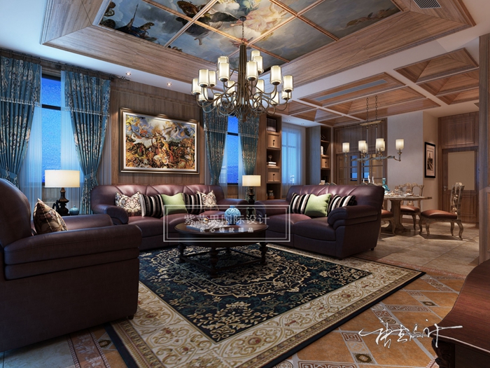 如果說(shuō)古典美式風(fēng)格線條復(fù)雜、色彩低沉,本案設(shè)計(jì)風(fēng)格則在古典歐式風(fēng)格的基礎(chǔ)上,以簡(jiǎn)約的線條代替復(fù)雜的花紋,采用更為明快清新的顏色,既保留了古典歐式的典雅與豪華,又更適應(yīng)現(xiàn)代生活的悠閑與舒適。
