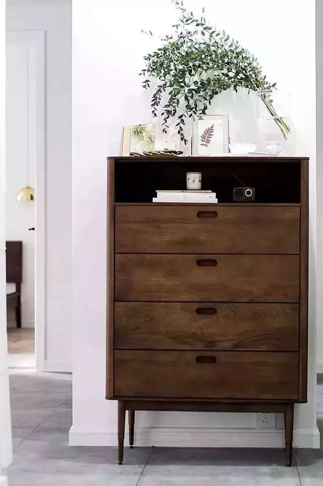 這樣中間和柜底懸空的設計,中間放綠植、相框、鑰匙、零錢的,底部放常穿的鞋子,其他封閉起來的柜子都可以當做收納柜。