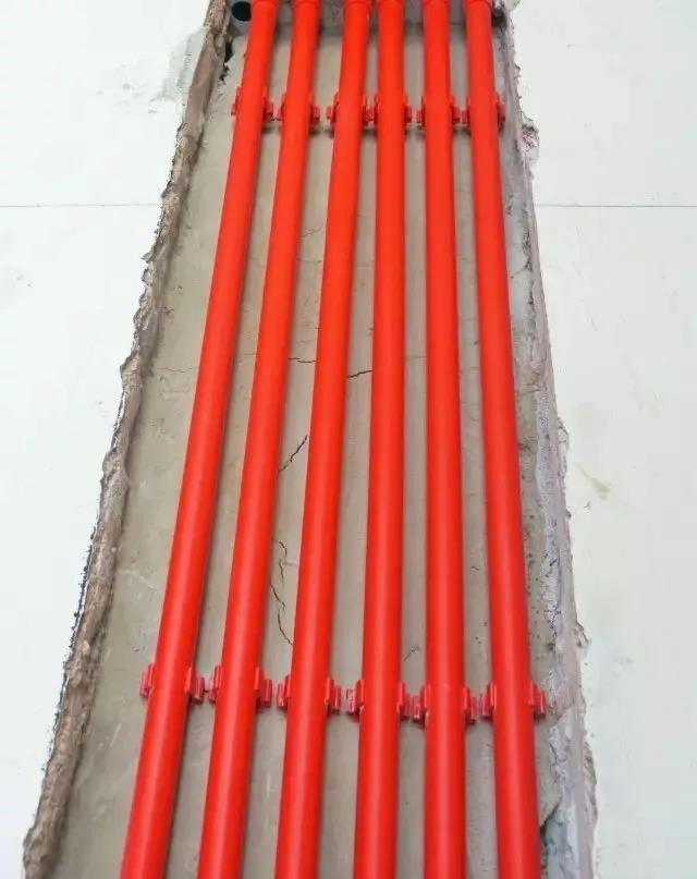 潮濕區(qū)域強電不得走地面,特殊情況在地面布線,線管直接須加PVC專用膠水,并包裹防水電工膠布3-5圈(紅管包藍色膠布,藍管包紅色膠布),過道處地面管線用水泥砂漿“八“字護坡保護。