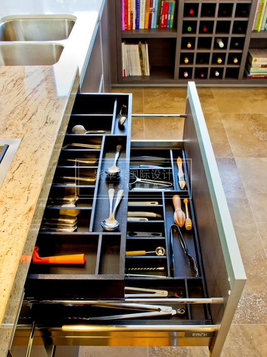 在設(shè)計櫥柜時要把微波爐、洗碗機、消毒柜、電烤箱等一些大型廚具充分考慮進去。