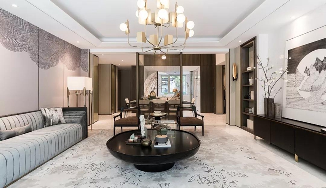 空間的整體布局簡美方正,用東方“端正方整”的形制尋找最本質(zhì)的自由。而在簡約空間中,更強調(diào)富有變化、多層次的空間場景塑造,將新貴階層的精神需求作為重點訴求。