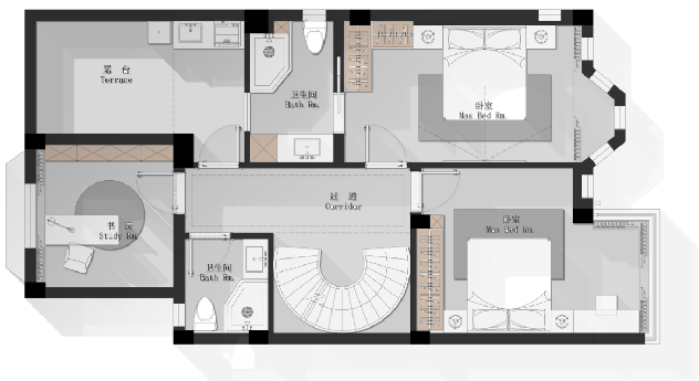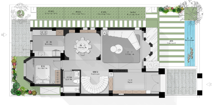 呈現(xiàn)出空間的通透感,讓人身心放松,感受生活的美好與恬靜。地下室的半澆挑空設(shè)計更是增加與家人之間的親密互動。
