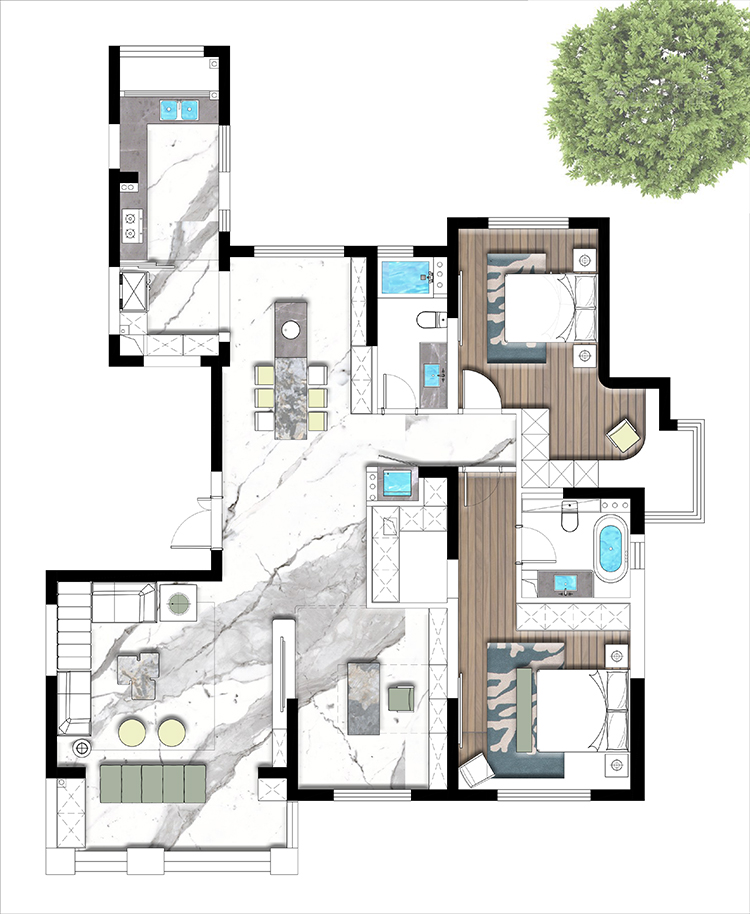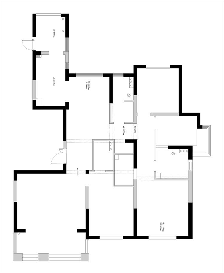 原始結(jié)構(gòu)進(jìn)門有一個(gè)衛(wèi)生間,不太合理,設(shè)計(jì)師后期全部打開(kāi)來(lái)做,由于承重結(jié)構(gòu)三個(gè)房間的位置也比較固定,所以我們把主要的改動(dòng)思路放在了公共區(qū)域即客餐廳這幾塊空間。