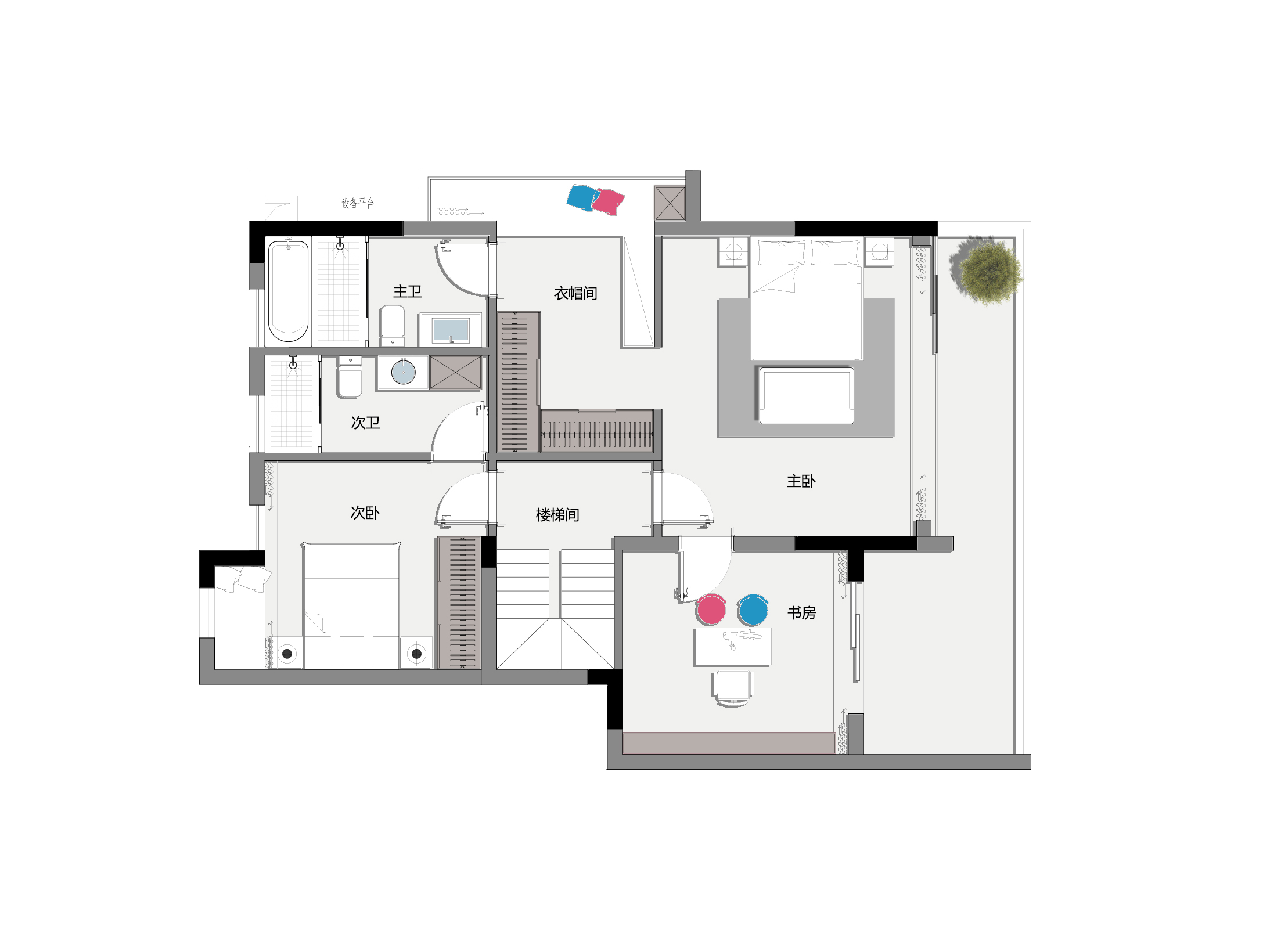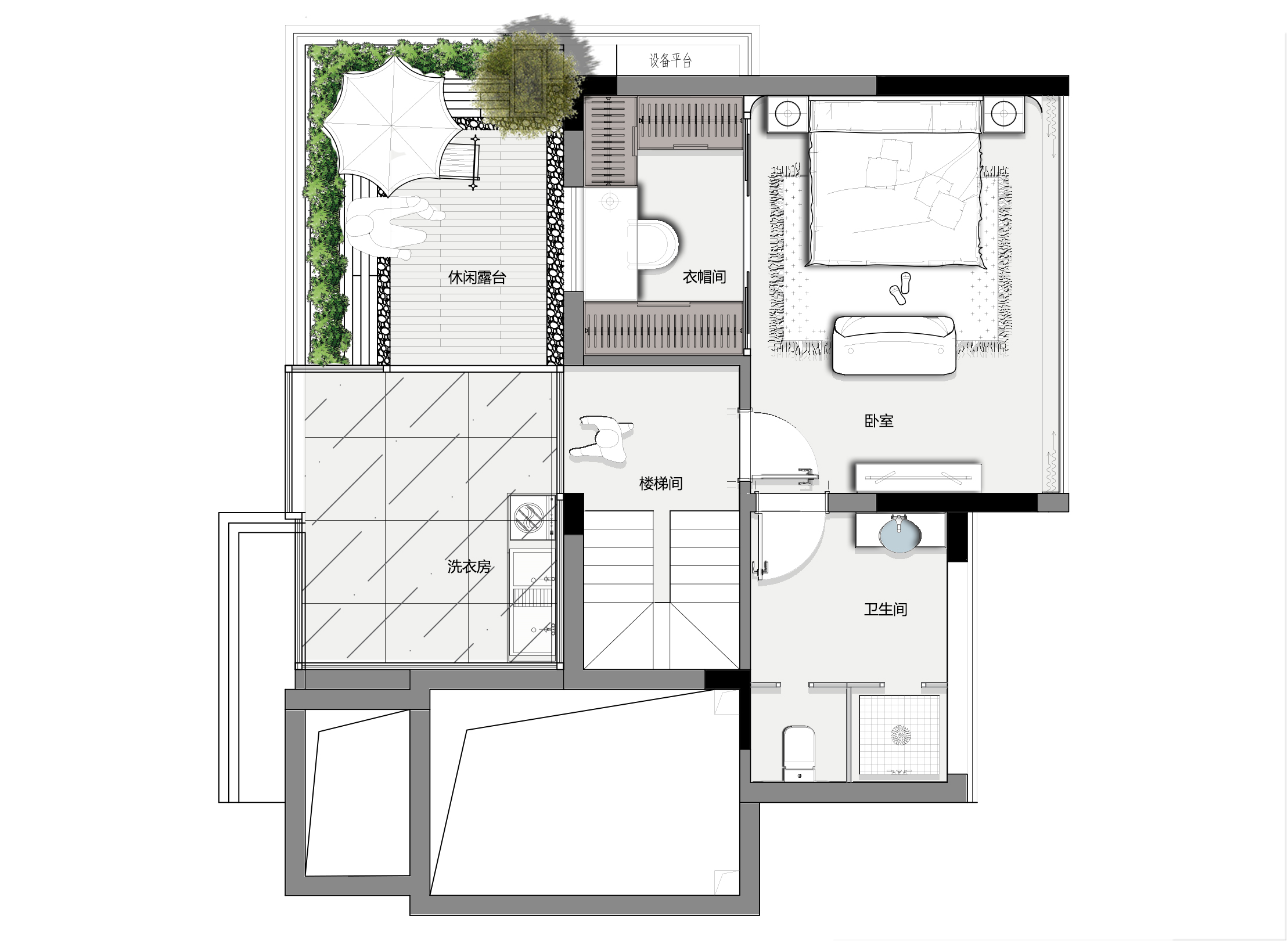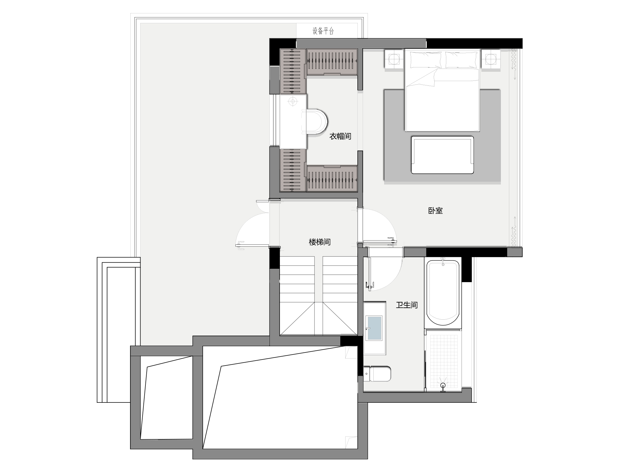 層做了一個主臥大套房,外面半露臺,給主人居住很舒服