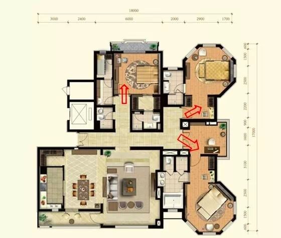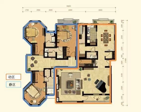 但大戶(hù)型不能一味大,不然,就會(huì)造成空曠感,反而降低了居住的舒適度。200平米以上的戶(hù)型基本劃入別墅范疇,它有幾個(gè)主要的分區(qū)尺度: