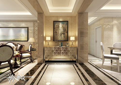 玄關地板的圖案花樣繁多,應選擇寓意吉祥的內容,必須避免選用那些多尖角的圖案,切忌尖角沖門。