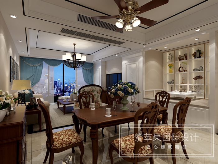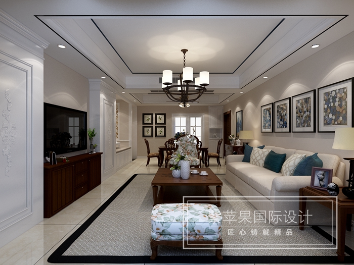 客餐廳:在甲方要求必須將現(xiàn)有家具使用的情況下,本案設(shè)計師巧妙運用多層次吊頂把客餐廳空間區(qū)分明確,墻面大面積采用乳膠漆調(diào)色淡化過渡深色家具,輔以大面積白色底色,用青檸色流行色點綴加入流行的淡雅氣息,在電視背景巧妙的運用了西式對稱造型隱藏了主臥房門,充滿了復(fù)古雅致。