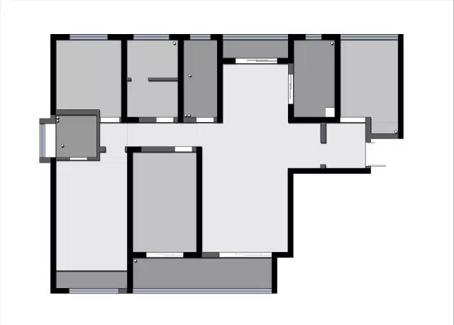 戶型整體而言空間較為規(guī)整,南北通透保證了采光和通風。但是房屋承重墻較多,限定了每個空間的大小,不便于房屋的格局改變;且房屋拐角較多,面積難以利用。