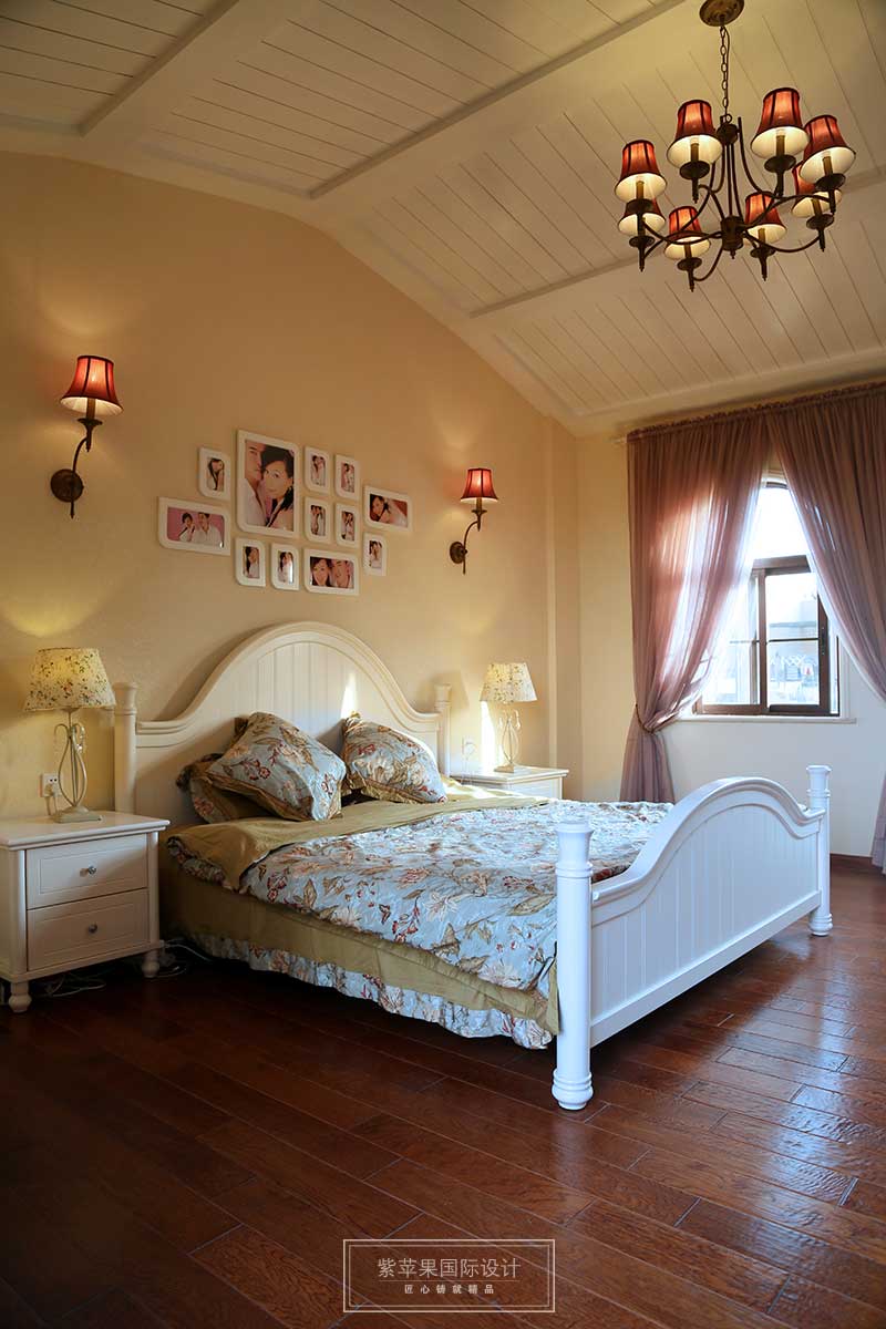 弧形的屋頂讓空間的視線得以延伸,花紋床品為空間注入一股清新的春意與田野的味道,當紗質(zhì)的窗簾隨風起舞,使得陽光從縫隙中偷偷進入,傾瀉至床上,撒上一片芬芳,每個清晨,讓溫暖、自然的陽光叫醒自己,何嘗不是業(yè)主要的幸福生活。