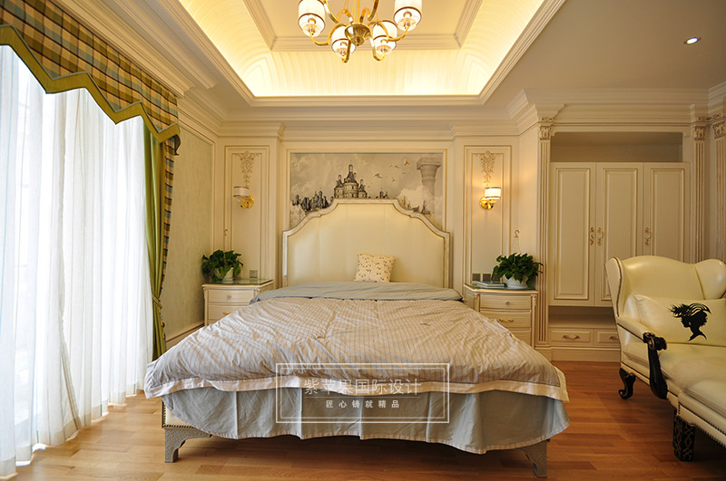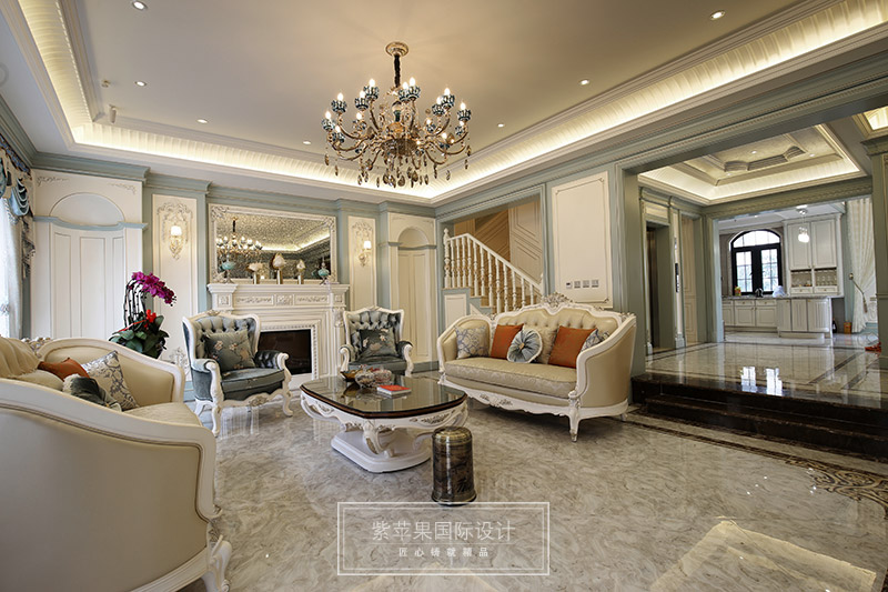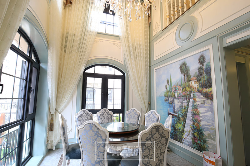 【紫原創(chuàng)-裝修實景】布局上突出軸線的對稱,恢宏的氣勢,注重居室空間的豪華舒適;細節(jié)處理上運用法式廊柱、雕花、線條,制作工藝精細考究;崇尚沖突之美,均是法式風格的特色。