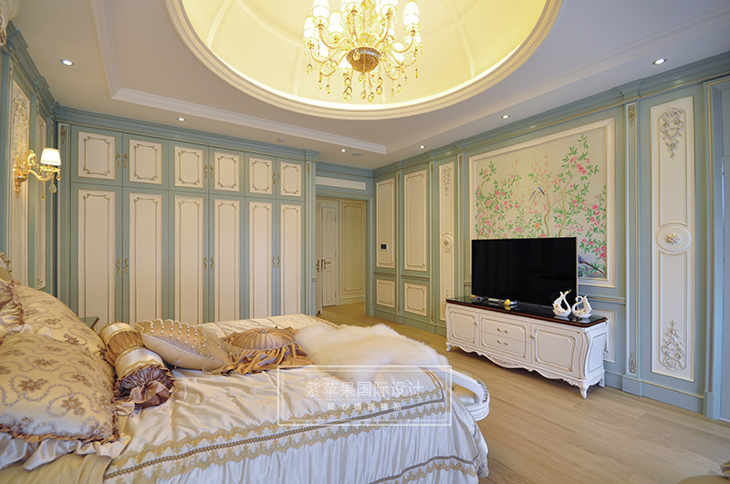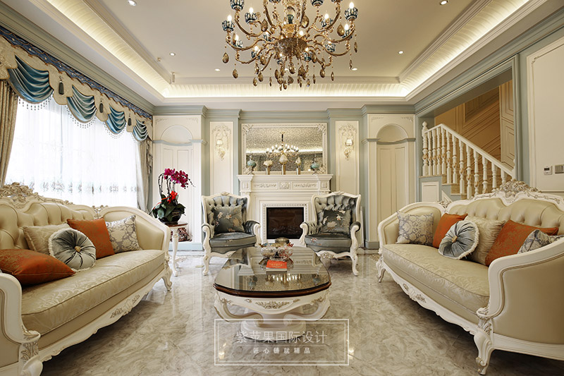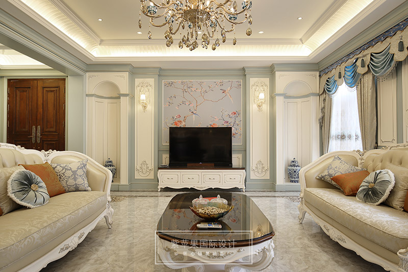 開放式的空間結構、隨處可見的花卉和綠色植物、雕刻精細的家具……所有的一切從整體上營造出一種田園之氣。Tiffany藍的純粹,靈動,浪漫又優(yōu)雅,讓很多為之癡狂,設計師將它融入在空間里,在白色墻面,白色家具的襯托下,顯得空間清澈純凈,如絲般流動柔滑,一股浪漫的氣息在空間里肆意流轉!