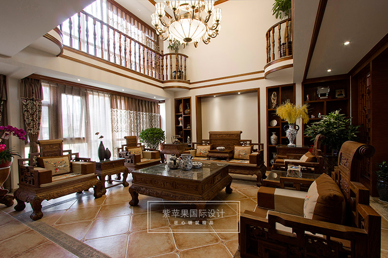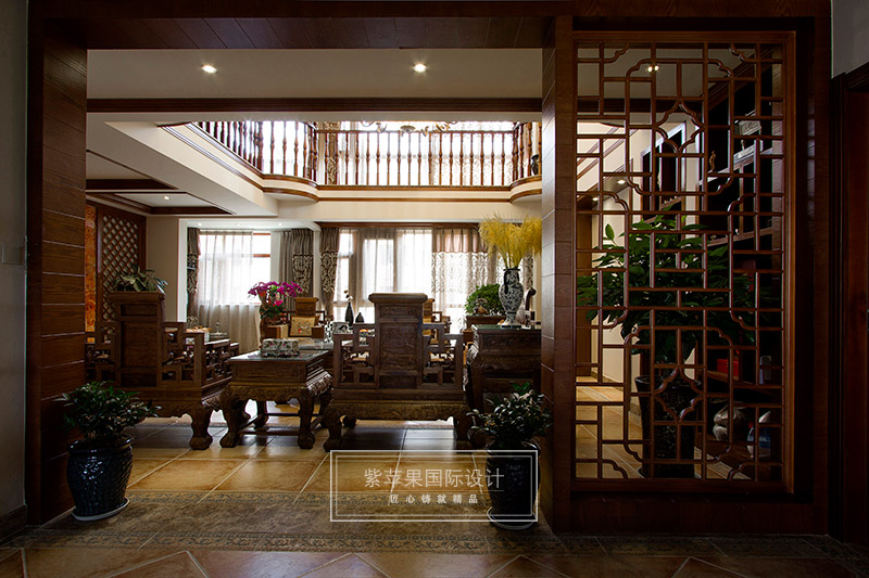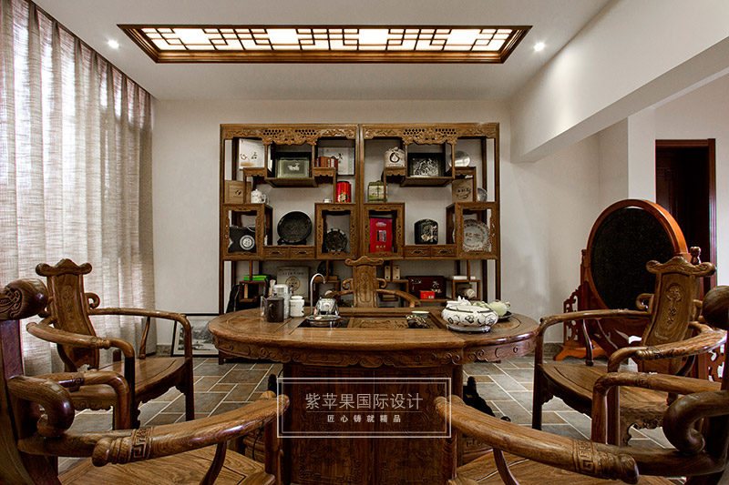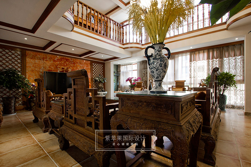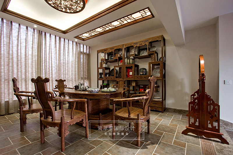 設(shè)計(jì)師除了以精致厚重的家具陳設(shè)凸顯空間的厚重與大家之范,更重視打造深遠(yuǎn)的文化意蘊(yùn),配飾運(yùn)用字畫、古玩、精致的工藝品加以點(diǎn)綴,彰顯主人的品位與尊貴。無處不在的文化韻味和獨(dú)特風(fēng)格,體現(xiàn)中國傳統(tǒng)家居文化的獨(dú)特魅力。