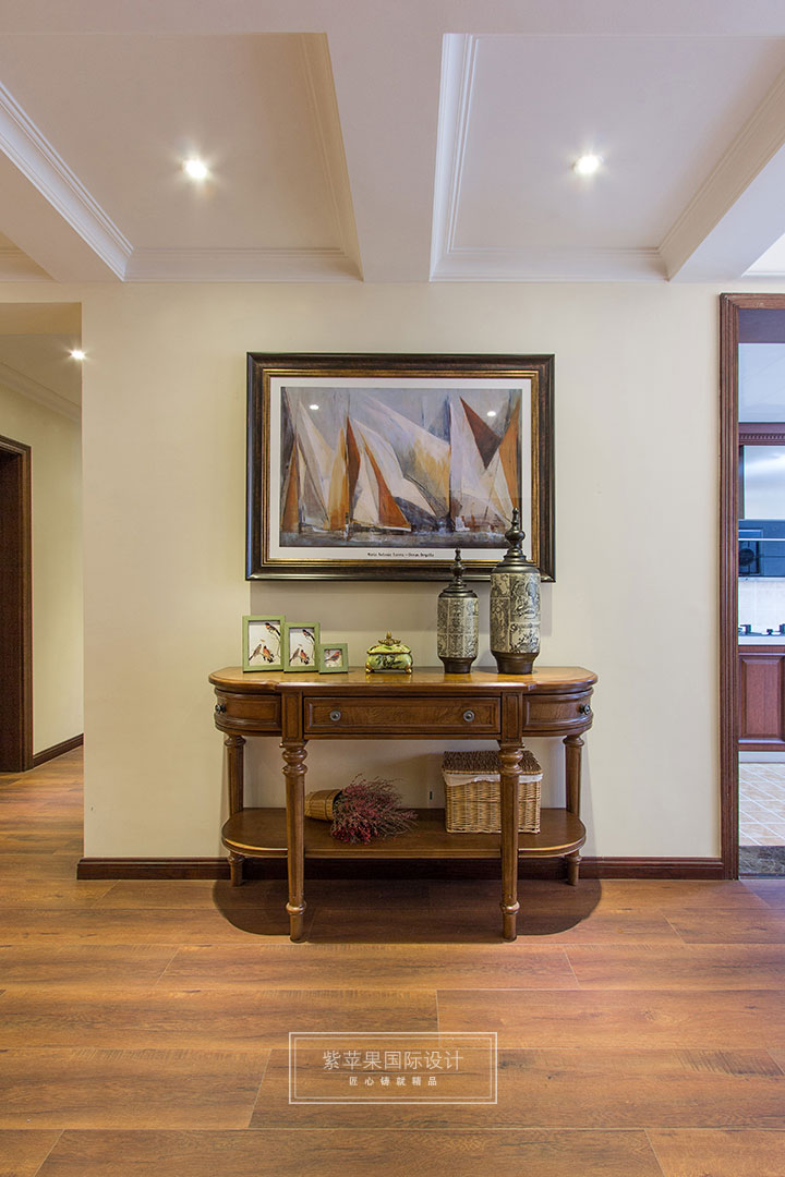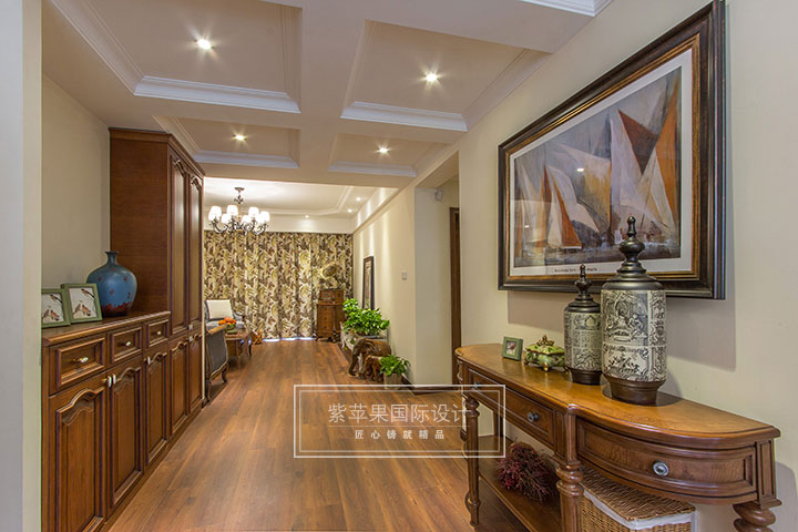 開門第一道美景,風(fēng)景油畫的淡雅與清新點綴在古典氣息的家具當(dāng)中,搭配自然氣息濃厚的裝飾品,于古典中帶有一點隨意,摒棄了過多的繁瑣與奢華。營造出閑散與自在,溫情與柔軟的氛圍,給業(yè)主一個真正溫暖的家。