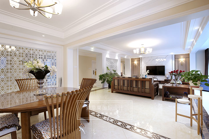 設(shè)計(jì)師將客廳、餐廳空間打通,讓室內(nèi)空間開敞、內(nèi)外通透,墻體采用鏤空設(shè)計(jì),讓自然光結(jié)合燈光,空間更加透亮,明亮的落地窗讓房子沐浴在陽光中,當(dāng)正午的陽光透過窗戶灑在室內(nèi),照暖沙發(fā)、茶幾、地板……此時(shí),一家人的休閑時(shí)光更加溫馨舒適!