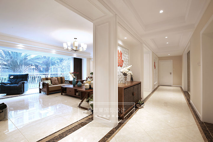 設(shè)計(jì)師用理性的眼光,將居室內(nèi)人、物、空間進(jìn)行完美協(xié)調(diào),一把造型雅致的中式風(fēng)格椅子,一副水墨畫,勾勒出主人的閑情逸致,傳達(dá)出溫馨品味的空間內(nèi)涵。