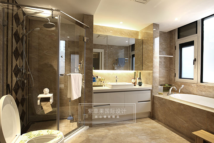 衛(wèi)浴空間最見主人對(duì)品質(zhì)生活的需求,每個(gè)物品都體現(xiàn)審美與情趣,良好的干濕分區(qū),讓洗浴更加方便,精致,透明的淋浴室,與裝飾鏡相映襯,令整個(gè)衛(wèi)浴空間倍顯通透明亮。
