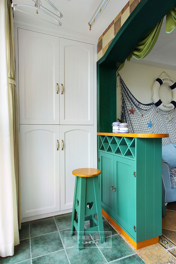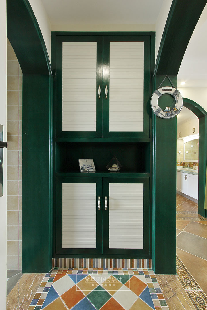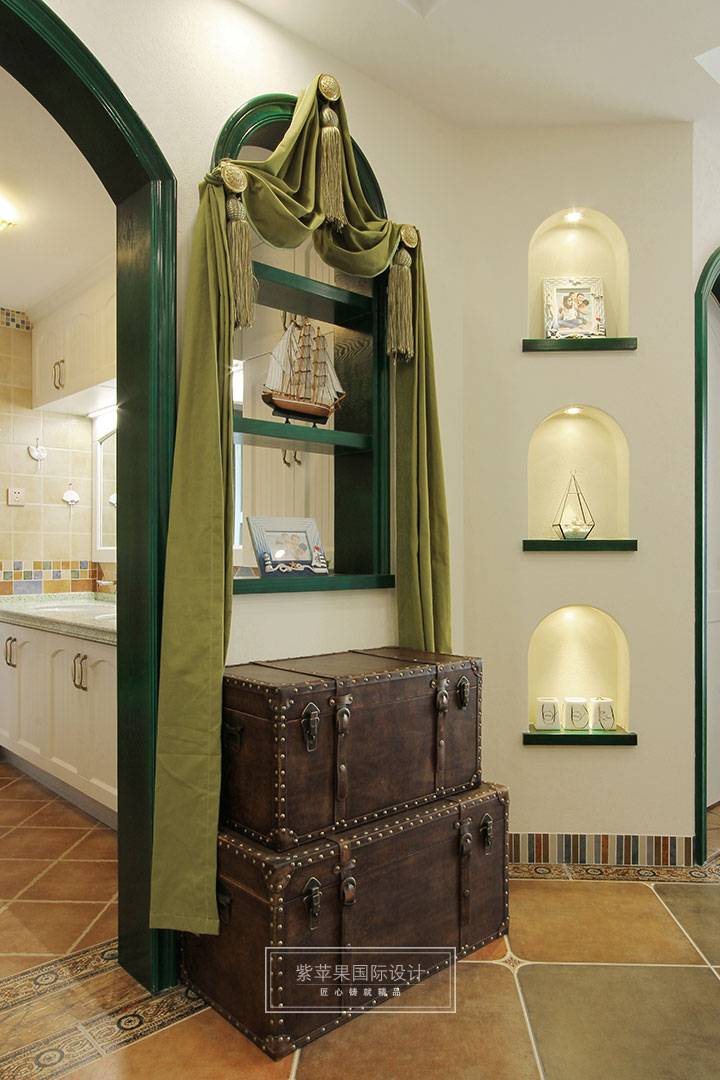 被海邊的元素包圍,窩在沙發(fā)發(fā)呆,享受放松的感覺(jué)。地中海風(fēng)格,造型上,廣泛運(yùn)用拱門與半拱門,給人一種曲線美,又給人延伸般的透視感。家具選配上,通過(guò)擦漆做舊的處理方式,搭配貝殼、鵝卵石等海洋元素,表現(xiàn)出自然清新的生活氛圍。