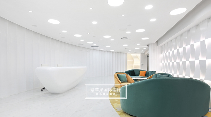 談及上海仁登醫(yī)療門診部的室內(nèi)及軟裝設(shè)計靈感,設(shè)計師表示:“美容院使用者大多為女性,而女人生來多感性,為感官性動物,整體設(shè)計則主要強調(diào)女性的柔美、圓潤、包容,裝飾多以曲線為主。”利用現(xiàn)代極簡風格中圓滑的曲線、溫柔的色彩與質(zhì)感,搭配簡約風的沙發(fā)、燈具、掛畫及大部分留白的墻面與空間,讓女性從中感受到和諧的平衡感。同時,從藝術(shù)性、人性化角度減少鏡面物品的出現(xiàn),增添暖光燈帶的隱藏運用,營造一種簡單干凈、純粹自然又不失格調(diào)品味的空間體驗。