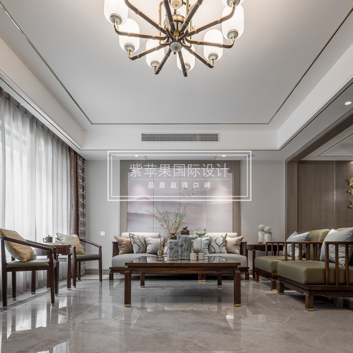 本案例將傳統(tǒng)風(fēng)韻與現(xiàn)代舒適感完美地融合在一起,在空間里運(yùn)用胡桃木色和金色鈦金條進(jìn)行現(xiàn)代和中式的碰撞,整個設(shè)計前衛(wèi)而復(fù)古,一體化的設(shè)計,每個空間相呼應(yīng),擴(kuò)大了空間感,整個空間都呈現(xiàn)出一個韻味舒適的氣息,更加實用,給人以內(nèi)心的平靜。