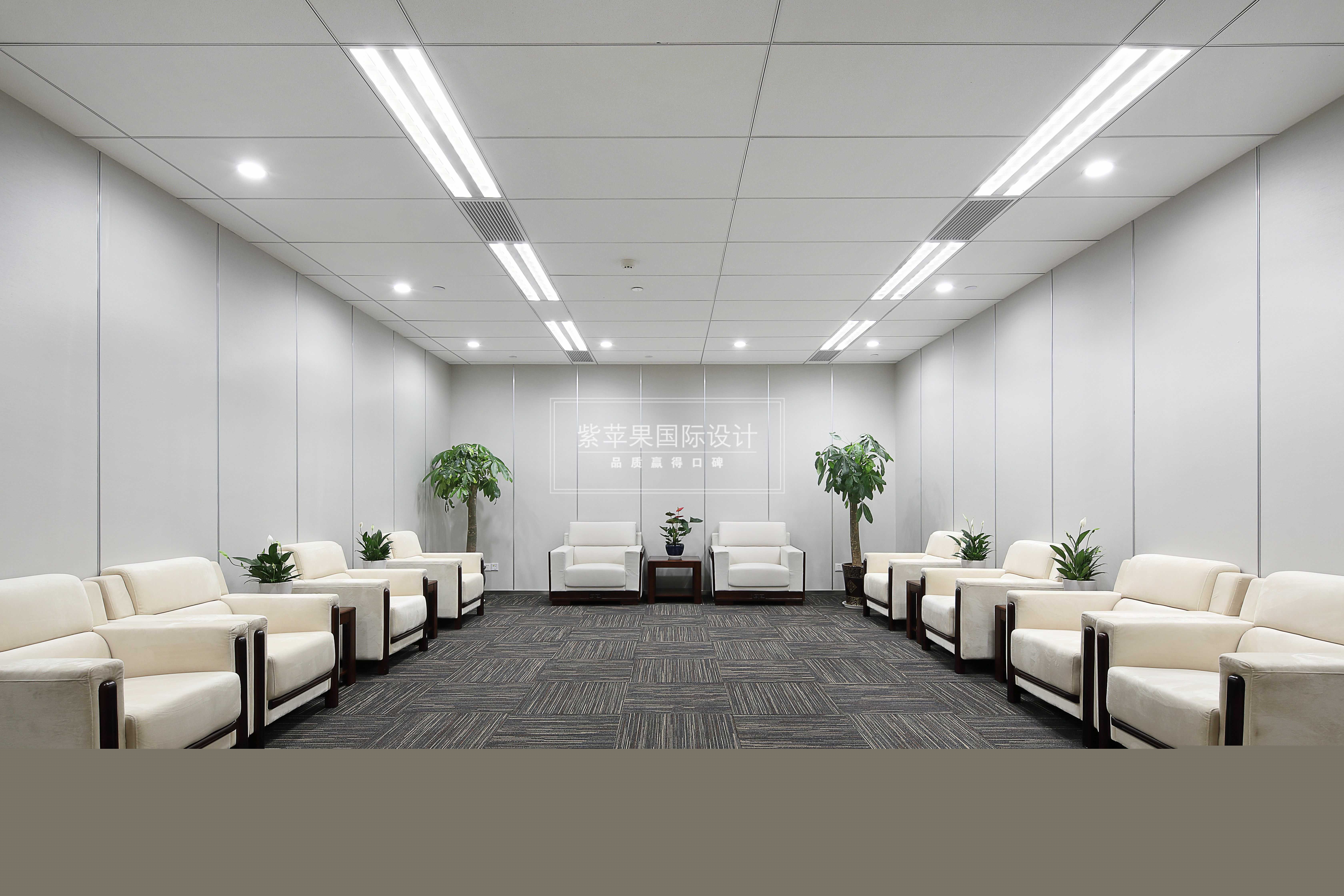 一出電梯間,映入眼簾的就是祥瑞的前臺處。大面積留白的區(qū)域顯得寬敞大氣、不拘小節(jié)。采用經(jīng)典黑白的色彩搭配,兩旁角落處用綠植盆栽作加飾,不失商務(wù)禮儀和氣度。