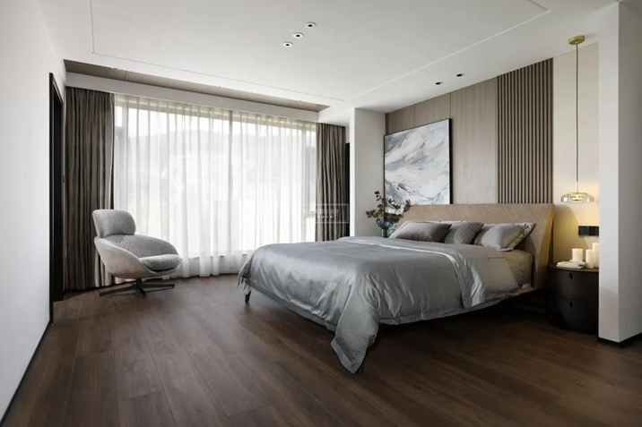 主臥室摩卡棕色系糅合棱角平衡冷暖色調(diào),保留理性思考,營(yíng)造安靜溫柔,享受獨(dú)處私密空間。