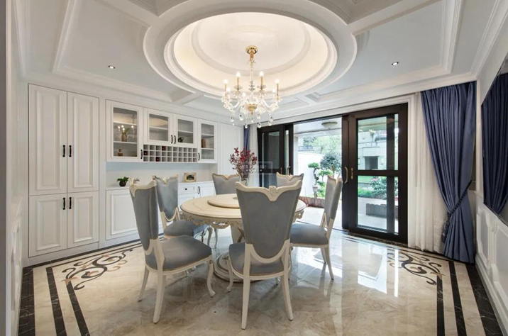 燭臺樣式的吊燈,對稱的象牙白餐邊柜仿佛耳邊響起的是小提琴的優(yōu)雅獨奏。