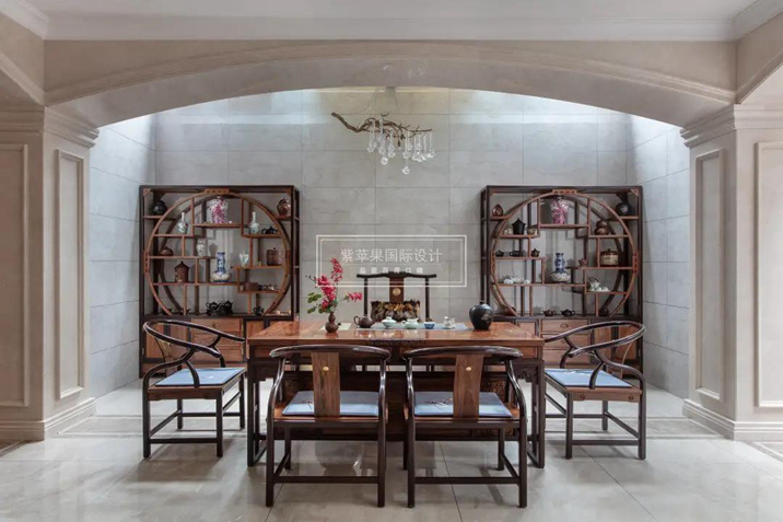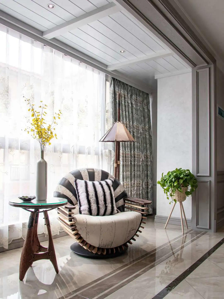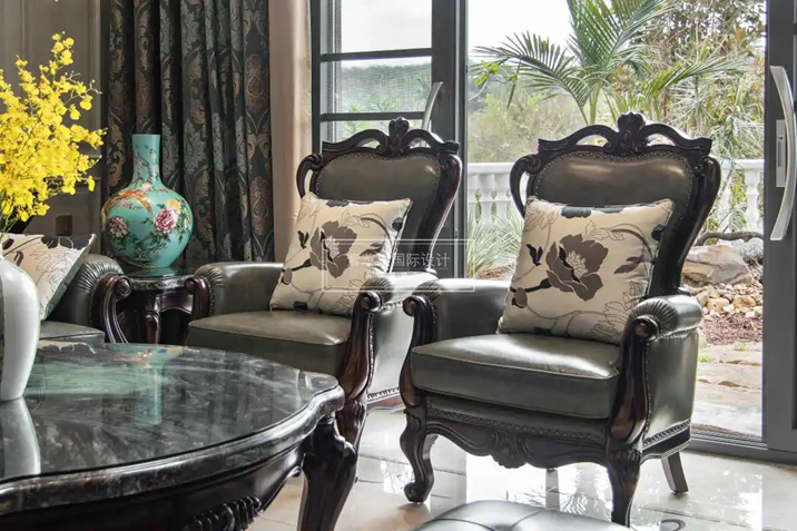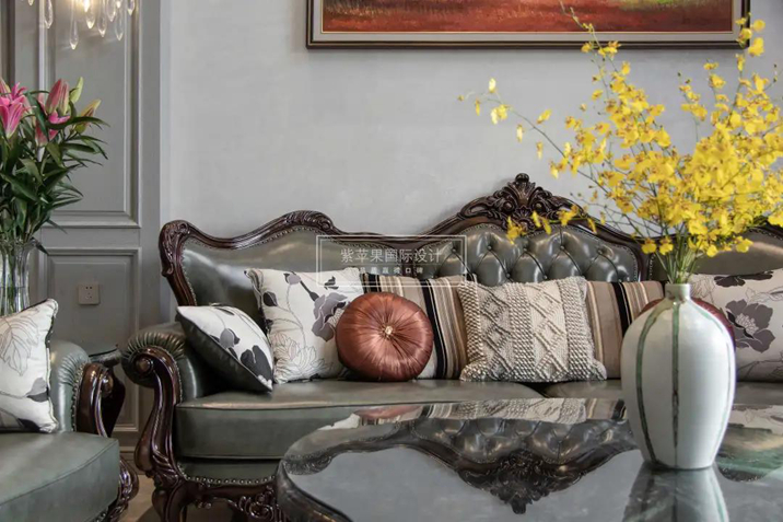 大量木飾面和石材的裝飾,新古典元素的灰調(diào)皮質(zhì)沙發(fā),模仿動物形狀的家具腳腿造型,用現(xiàn)代人生活的審美做設(shè)計,讓美式風格的歷史感,也充滿了現(xiàn)代生活的精致與個性。