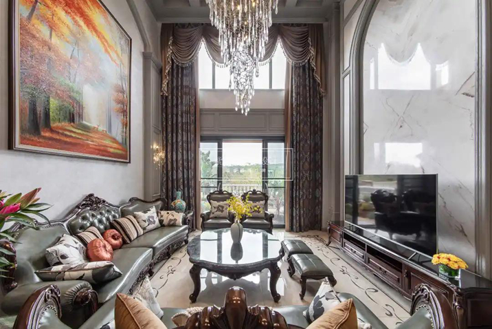 挑空客廳,是別墅獨特的體現(xiàn),現(xiàn)代設(shè)計手法的復古華麗的吊燈點綴,無論是從下往上看,還是從上往下看,都有強大的沖擊感,讓整個空間更富有層次。